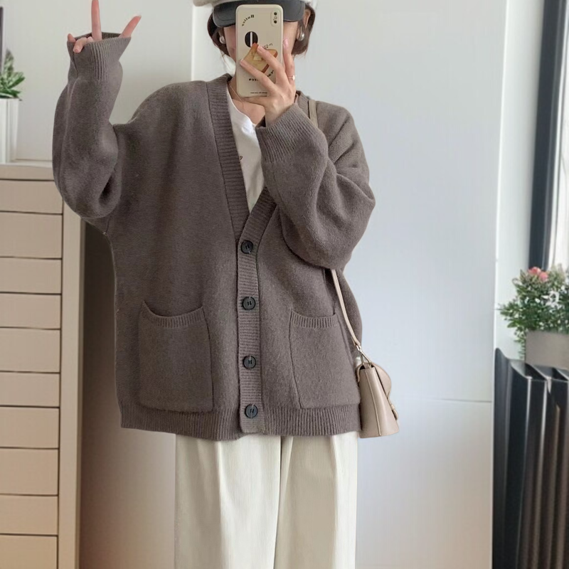 怠惰なスタイルのセータージャケット女性初秋 2024 新しいニットカーディガン春と秋の摩耗緩い無地トップ